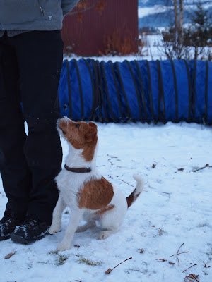 Jeg er en anelse umotivert med tanke på hundetrening også for tiden. Eller jeg er egentlig veldig motivert for agilitytrening, men det er jo ganske begrenset hvor mye man får gjort av det nå når det er så kaldt. Det blir liksom den ene gangen i uka når det er inntrening. Kanskje litt sirkeltrening (som jo egentlig ikke er agilitytrening sånn direkte) på gårdsplassen, og kanskje noen repetisjoner på hopphinder hvis jeg virkelig er i godlage. Har funnet ut at ting som kan belønnes med leke til en viss grad kan gå an å trene litt ute, for da kan jeg ha vottene på hele tiden. Men er det noe som best belønnes med godis blir det vanskelig. Det er helt grusomt å fryse sånn på fingrene, og i tillegg har man kanskje en overivrig hund som napper litt i kalde fingre når godisen skal gis. Au, ikke godt.