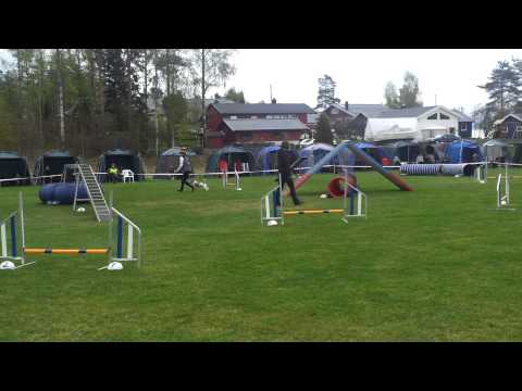På Romerike hadde jeg bare meldt på en dag, det ble en fin dag, sett bort fra punktering på vei hjem.. I agility gikk vi feilfritt og fikk en 2. plass. Jeg hadde ikke sånn kjempegod følelse, selv om vi gikk feilfritt og fikk napp. Han stoppet for å snuse i slalom, og farta var ikke all verden. Vi hadde ikke spesielt god tid, og det er ene og alene fordi jeg ikke løper ordentlig. Det er som Ragnar sa til meg etterpå at det er jeg som bremser og senker farta til hunden. Ser det godt på filmen og, at det er bare så vidt jeg liksom jogger litt. Filmen er ikke så mye å legge ut egentlig, men kjekt å ha den for å se selv hvor tregt det faktisk går selv om jeg tror jeg springer.